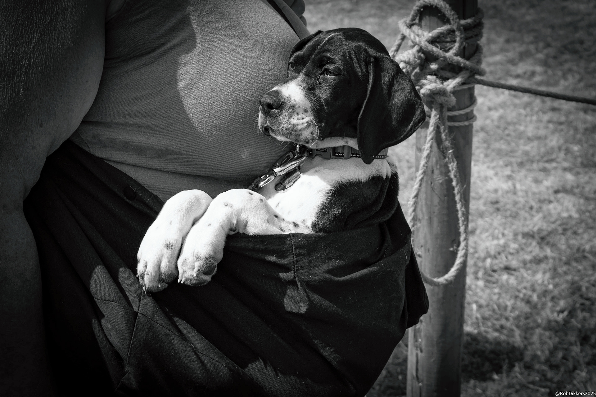 Jonge hond in draagtas